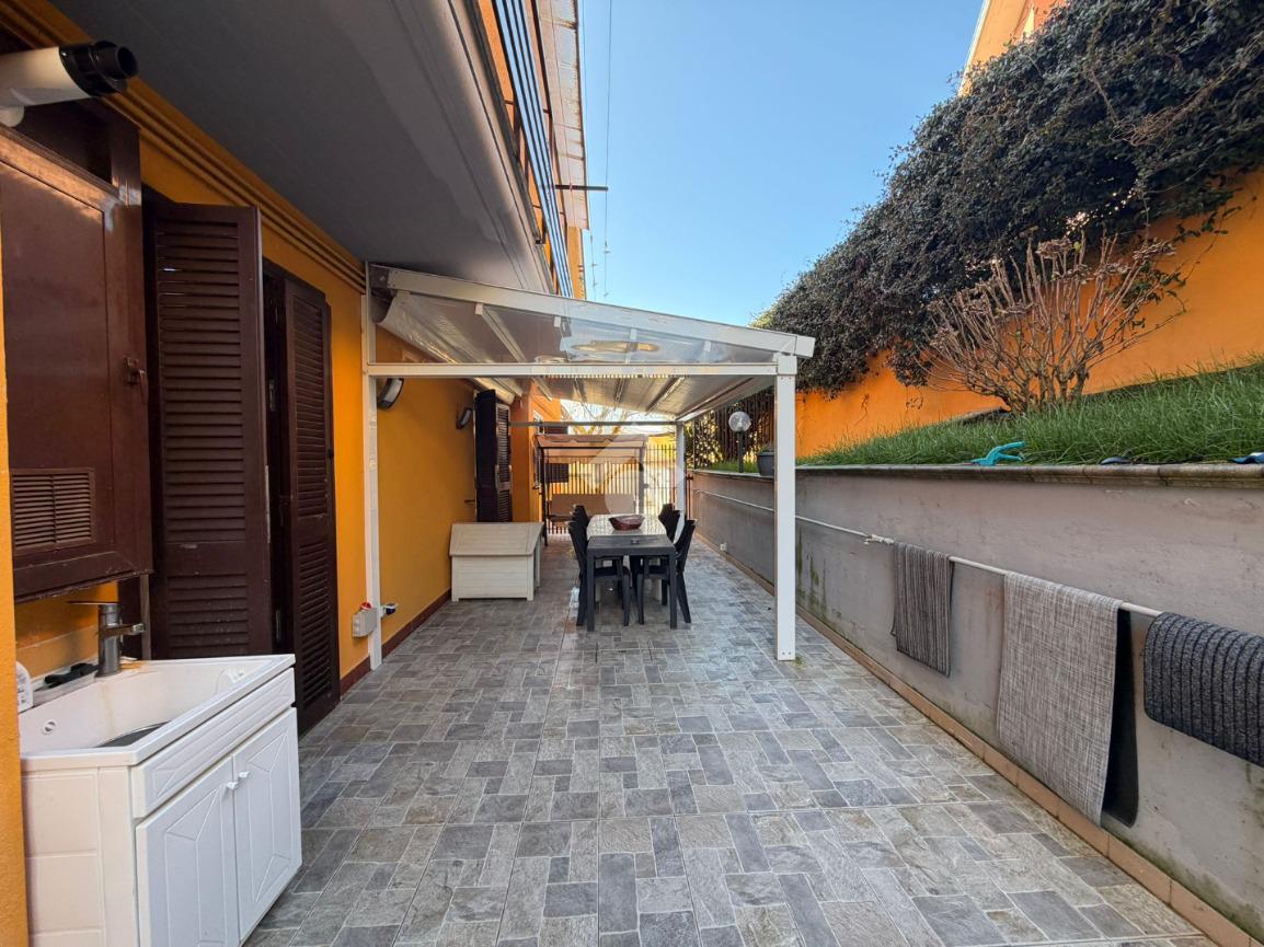 Nel cuore di Rocca Priora, a pochi passi da tutti i servizi principali, al piano terra di una palazzina di soli quattro appartamenti proponiamo in vendita un appartamento ideale per chi cerca comfort e praticità. L'immobile, ristrutturato nel 2024, offre un salone doppio con camino elettrico che si apre su un giardino perimetrale, perfetto per momenti di relax all'aperto. La zona giorno è arricchita da una pergotenda elettrica esterna, che consente di godere dello spazio esterno in ogni stagione. La zona notte comprende un'ampia camera matrimoniale con bagno finestrato, una cameretta e una stanza versatile che può essere utilizzata come ulteriore cameretta o ripostiglio. I doppi servizi garantiscono funzionalità e comodità. L'appartamento è dotato di aria condizionata e dispone di un posto auto riservato. La posizione centrale e panoramica offre una vista suggestiva e la comodità di avere tutti i servizi a portata di mano. Un'opportunità unica per chi desidera vivere in un contesto tranquillo senza rinunciare alla vicinanza al centro.