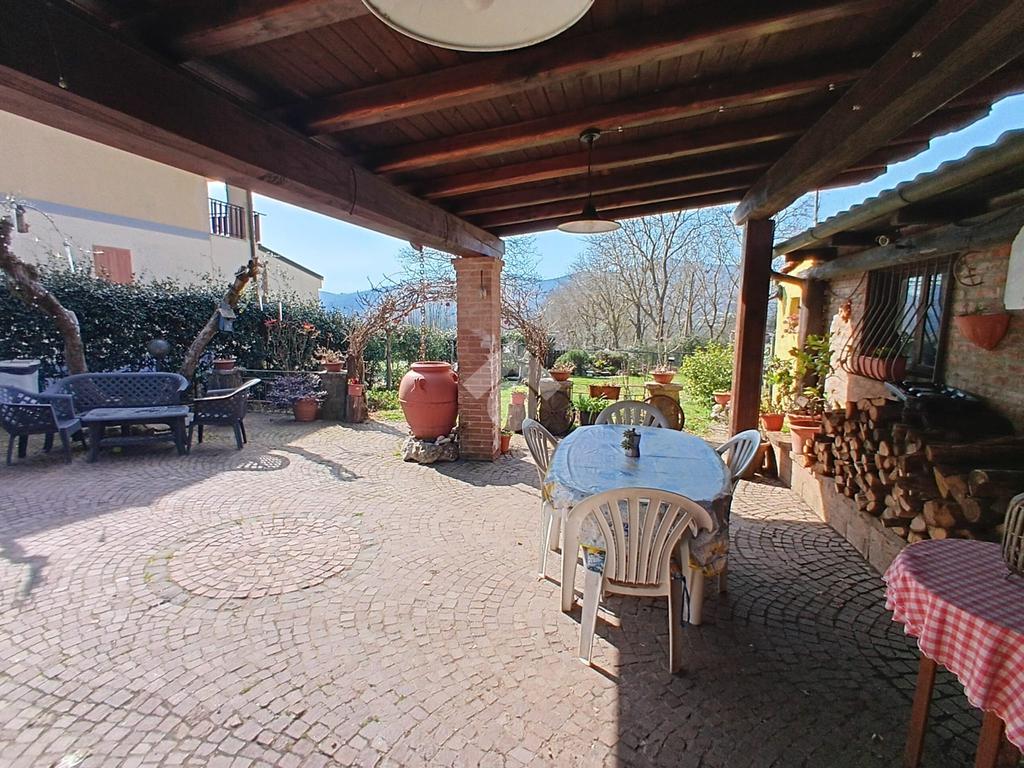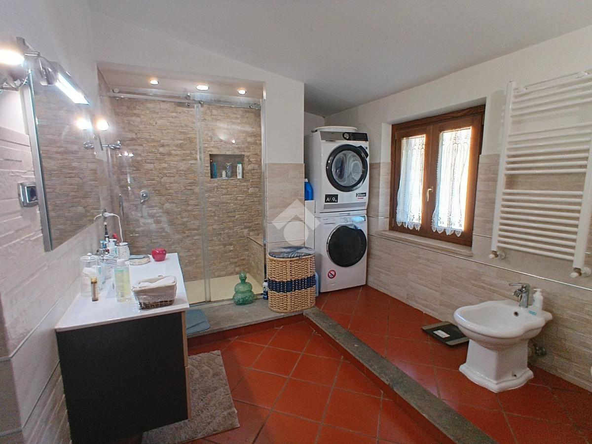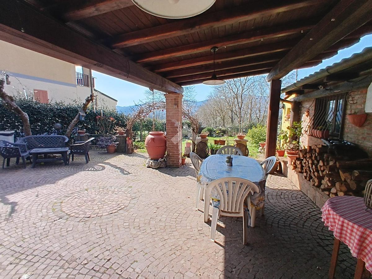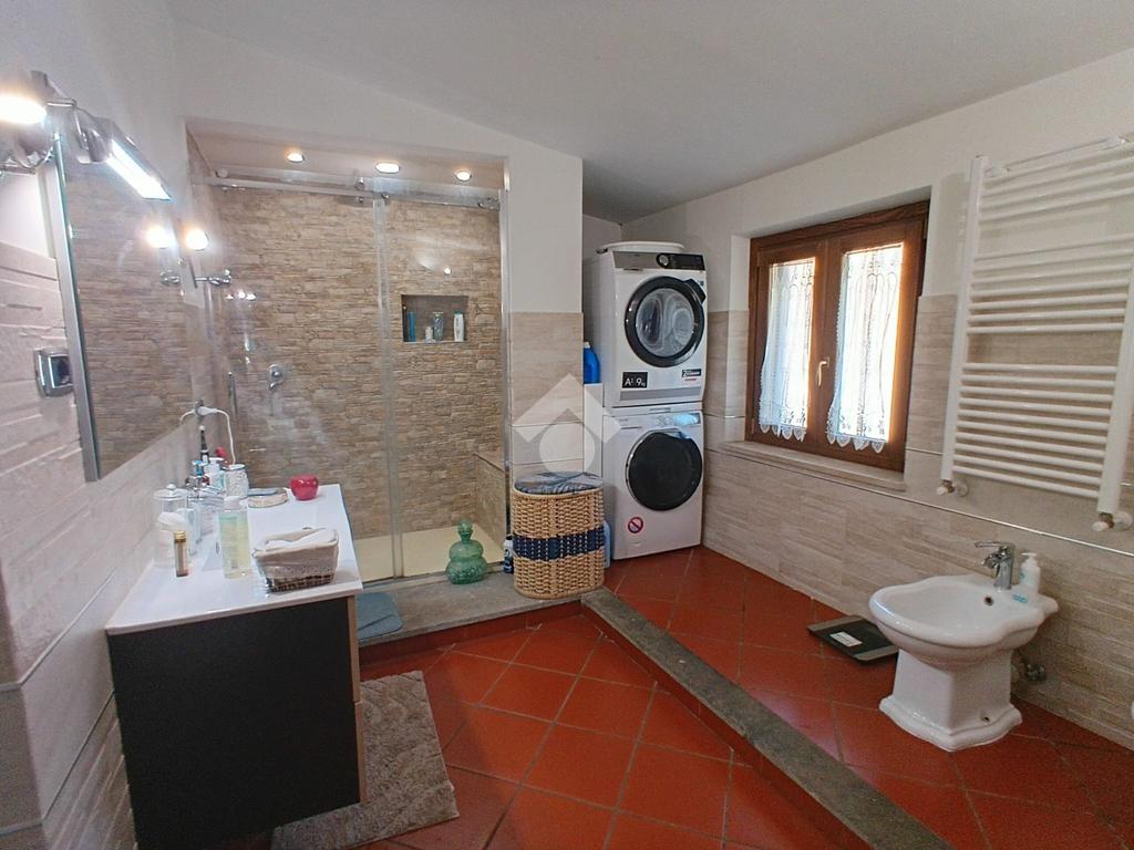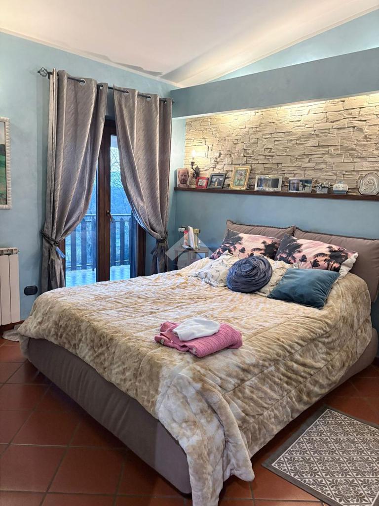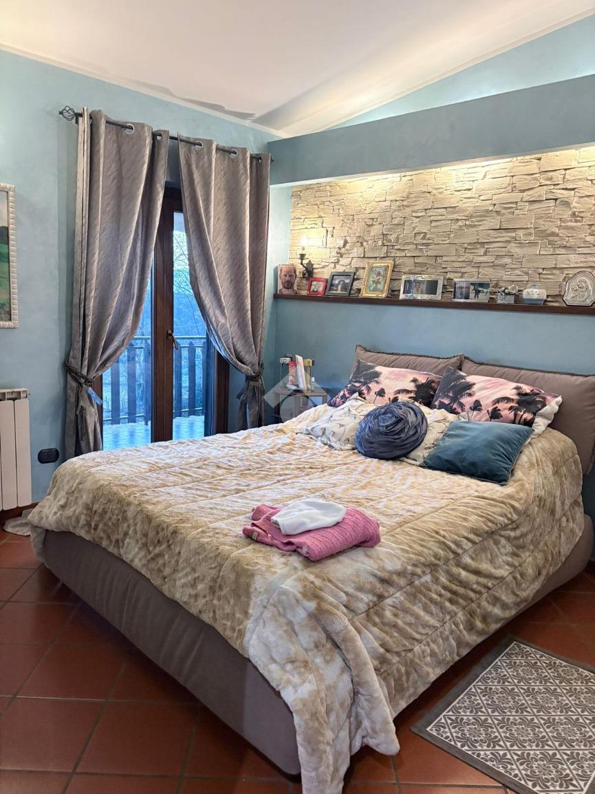 L'immobile offre un accogliente salone con termocamino, cucina abitabile dotata di piano a induzione e camino con accesso diretto al balcone. La zona notte comprende una camera matrimoniale, due camerette di cui una con balcone privato e due bagni ben rifiniti. Completa la proprietà un giardino privato dotato di una cisterna di recupero di acqua piovana con impianto di irrigazione e una dependance ideale per attivita' agricole, hobby e tempo libero.